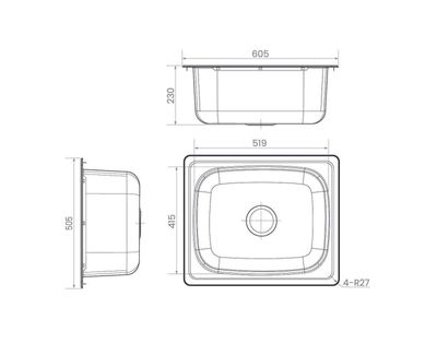 Laundry Bowl 519 x 415 / 230 deep Top Mount